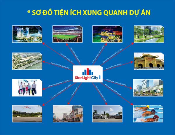 StarLight City 2 thừa hưởng đầy đủ các tiện ích xung quanh mang lại như: bệnh viện đa khoa Bến Cát, bệnh viện đa khoa Mỹ Phước quy mô 500 giường, siêu thị Vinatex, trung tâm mua sắm GS Square, dịch vụ cao cấp của các khu biệt thự 5 sao: EcoLakes, Western Land,…