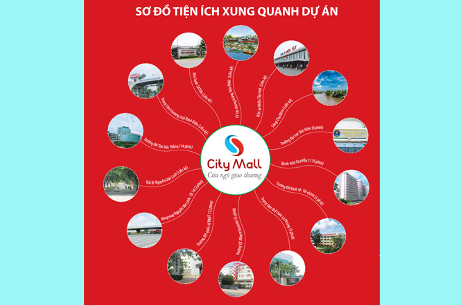 Dự án City Mall còn được bao bọc bởi hệ thống sông Chợ Đệm – sông Cần Giuộc tạo nên mạng lưới giao thương bằng đường thủy với các tỉnh miền Tây vô cùng thuận lợi và nhanh chóng. Ngoài ra, dự án City Mall còn nằm gần trường một loạt trường đại học như RMIT, Kinh tế Tài chính, Văn Hiến, trường Quốc tế Canada, Trung tâm Thể dục Thể thao Lá Phong, sân vận động Thành Long cùng với các cơ sở thương mại và y tế như siêu thị BigC, Metro Bình Phú, Bệnh viện Chợ Rẫy 2, Bệnh viện Nhi đồng mới...