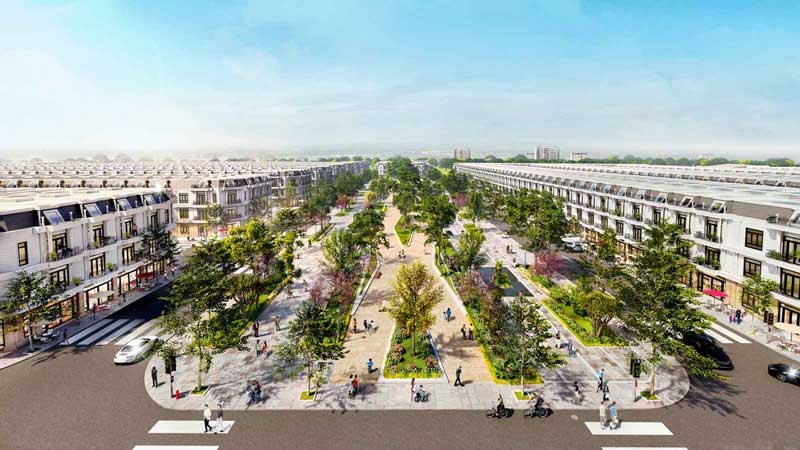Phối cảnh trục đại lộ thương mại xuyên tâm đẳng cấp của khu compound 5F Orianna
