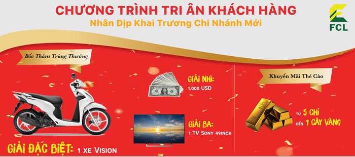 Theo đó, bên cạnh thẻ cào trị giá 5 - 10 chỉ vàng và rút thăm trúng nhiều giải thưởng giá trị cao trong ngày mở bán, khách hàng còn được tham dự chương trình rút thăm may mắn “Mua đất vàng - Trúng xe sang” với cơ cấu giải thưởng gồm: 1 xe Honda Vision, Tivi, Tủ Lạnh và hàng trăm ngàn quà tặng hấp dẫn khác.