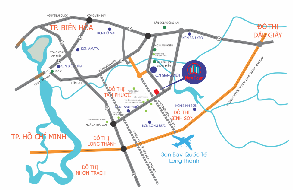 Theo quy hoạch phát triển của tỉnh Đồng Nai đến năm 2020, tầm nhìn đến 2030, New Town sẽ nằm ngay trung tâm khu vực phát triển trọng điểm và năng động bậc nhất, được chú trọng đầu tư về mọi mặt nhằm trở thành “thành phố sân bay” hiện đại bậc nhất khu vực châu Á.